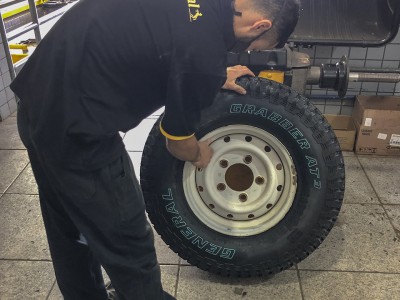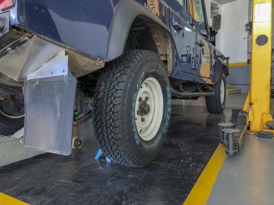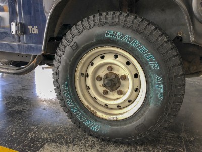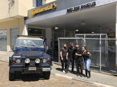 Agora, a Defender do Challenging Your Dreams, receber novas botas. Baloo, já com seus mais de 400.000 km rodados, acaba de receber os novos pneus GrabberAT3 da General Tire. E que lindão ele ficou!