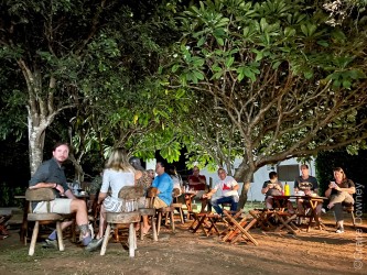 Música ao vivo, com roda de viola, bem pantaneiro. Muita alegria.