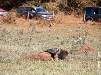 No último dia, durante o último trecho em comboio, tivemos a nossa última surpresa! Em pleno meio dia, um Tamanduá Bandeira apareceu para falar “volte logo”.