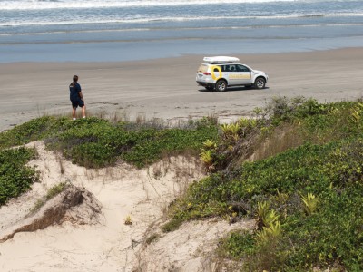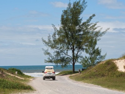 Deslumbrante areia branca, lindo oceano azul à nossa esquerda e os campos de dunas à nossa direita. O sol brilhando, janelas abertas e o vento renovador batendo na nossa cara — o que mais poderíamos querer?