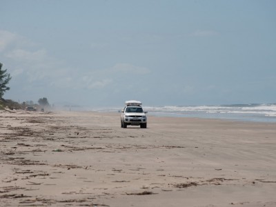 Com o possível mau tempo a caminho, decidimos atravessar para a Ilha Comprida e ver a condição da rota e as regras para dirigir até o seu ponto sul. Devido à falta de estradas e o desejo de proteger um dos últimos campos de dunas intocados no estado de São Paulo, há um trecho de quase 20 km em que é obrigatório dirigir pela praia, juntando as duas partes da ilha.