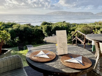Nossa base, o lindo Robberg Beach Lodge, de frente para o mar.