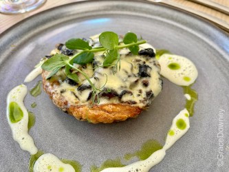 Aqui, o vinho é acompanhado de uma deliciosa tábua de queijos.