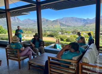 A próxima parada, nossos amigos da Vinícola Eikehof, em Franschhoek.